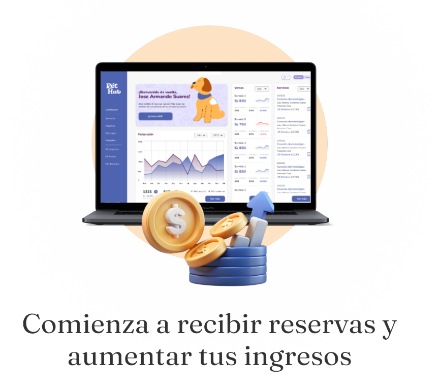 Unirte a Pet Hub te permite acceder a un nuevo canal de ventas donde puedes recibir reservas de tus servicios las 24 horas del día aumentando la visibilidad y el alcance geográfico de tu negocio.